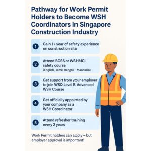 If you’re a foreign worker in Singapore’s construction sector and have a Work Permit, there’s great news for your career development — you can become a Workplace Safety and Health (WSH) Coordinator! Here’s a step-by-step guide on how you can upgrade your role and contribute to building safer worksites.